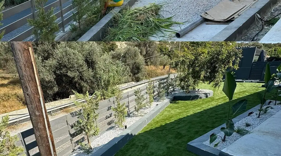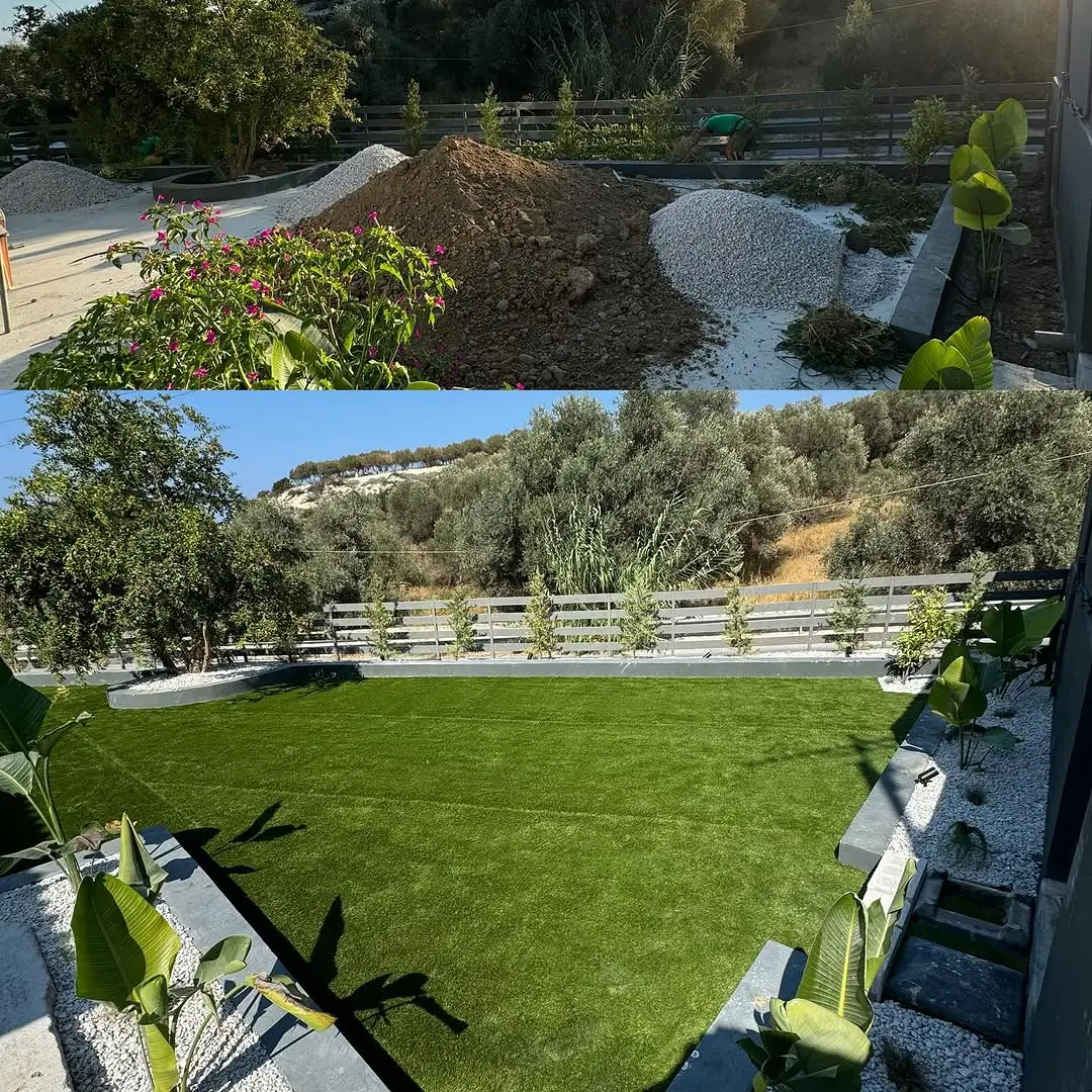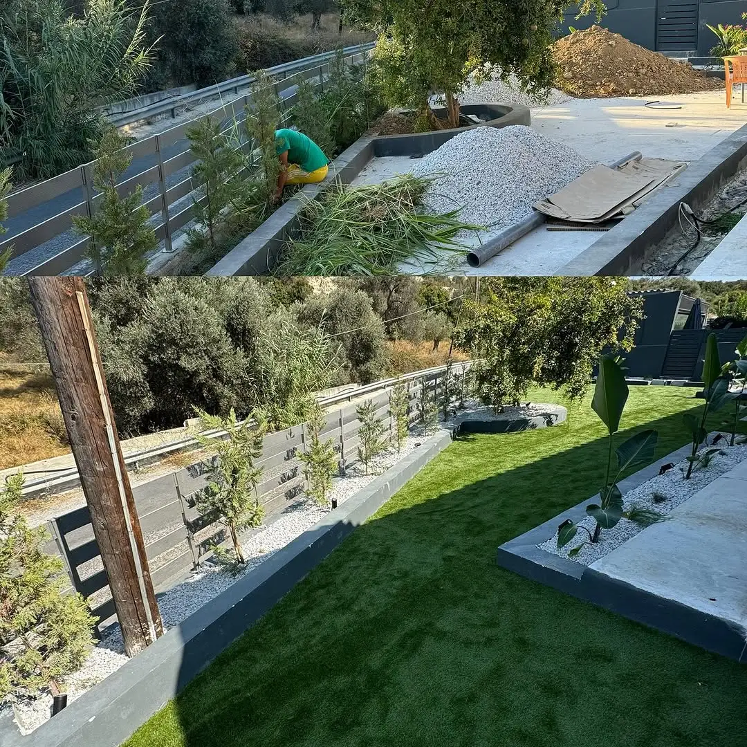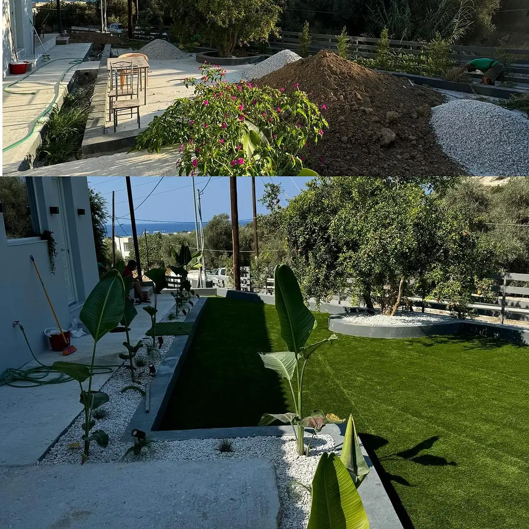 Ολοκληρώσαμε την κατασκευή ενός σύγχρονου και λειτουργικού κήπου με συνθετικό χλοοτάπητα σε βίλα στον Σταυρωμένο, Ρέθυμνο. Το έργο περιελάμβανε την προετοιμασία του εδάφους και την εγκατάσταση συνθετικού γκαζόν υψηλής ποιότητας, που παραμένει πάντα πράσινο και δεν απαιτεί συντήρηση. Ο σχεδιασμός του κήπου συνδυάζει αισθητική και πρακτικότητα, προσφέροντας έναν εξωτερικό χώρο ιδανικό για χαλάρωση και φιλοξενία. Ο συνθετικός χλοοτάπητας αποτελεί μία εξαιρετική επιλογή για ιδιοκτήτες που επιθυμούν να διατηρούν τον κήπο τους άψογο όλο τον χρόνο, με ελάχιστο κόστος και προσπάθεια.